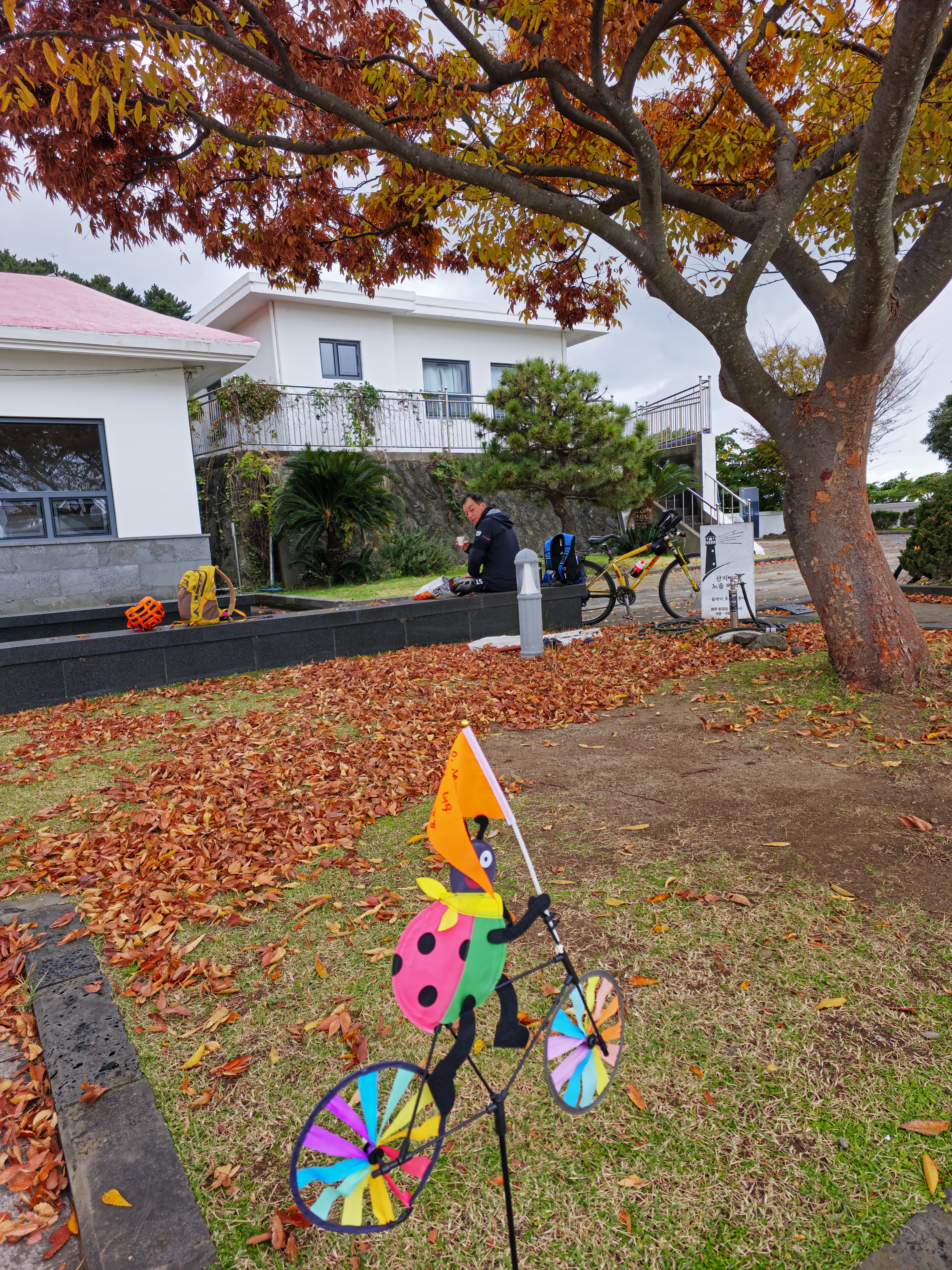 해안가로 따라가다 이 길이 아닌가 봐 몇 번 아까 그 길인가 벼 몇 번 하고 지나가는 약한 비도 맞고 85km 라이딩하고 4시쯤 송악산 쪽에 숙소를 잡았다